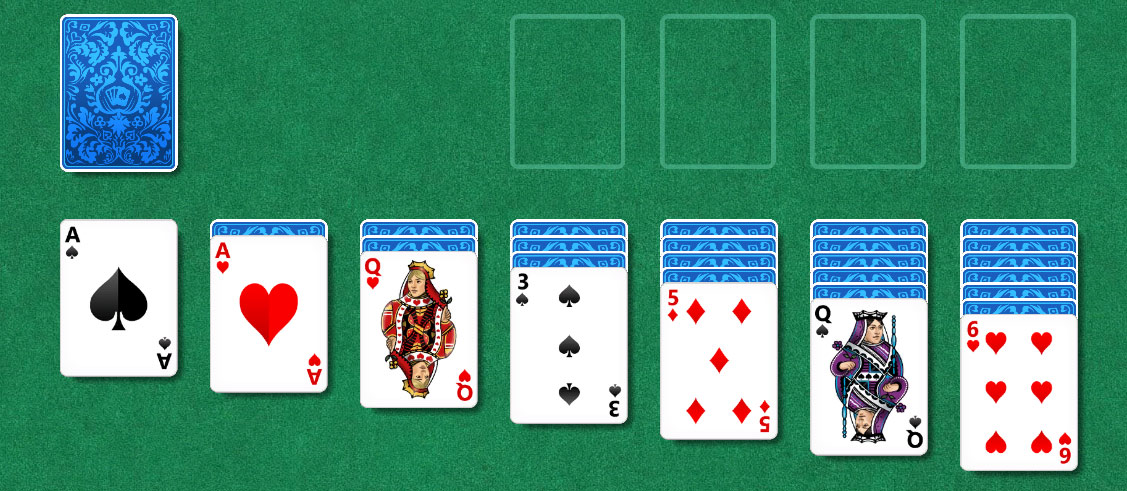 Pour créer ces piliers, il faudra forcément commencer par un As puisque ce sont la base des séries à former. Ces piliers accueilleront les cartes classées par ordre croissant et par couleur.
